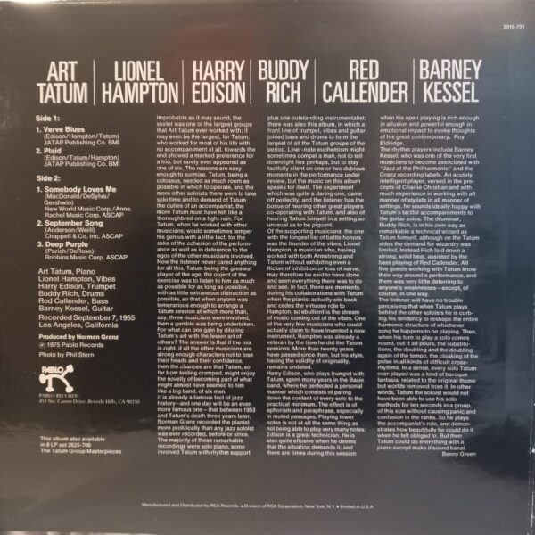 | Artist | ART TATUM, BUDDY RICH, LIONEL HAMPTON, BARNEY KESSEL, HARRY EDISON, RED CALLENDER |