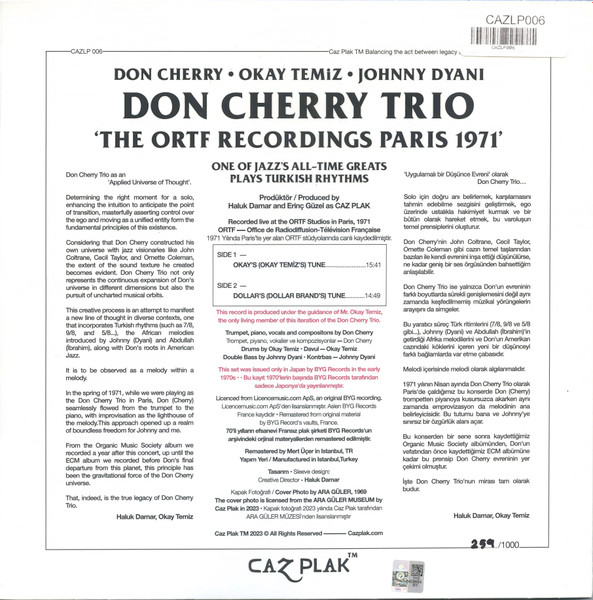 DON CHERRY – OKAY TEMİZ – JOHNNY DYANI – THE ORTF RECORDINGS PARIS 1971