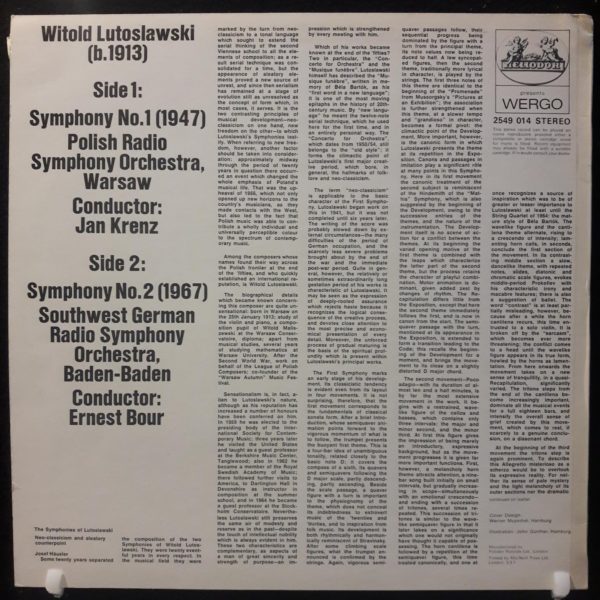 LUTOSLAWSKI – SYMPHONIES NOS. 1 AND 2