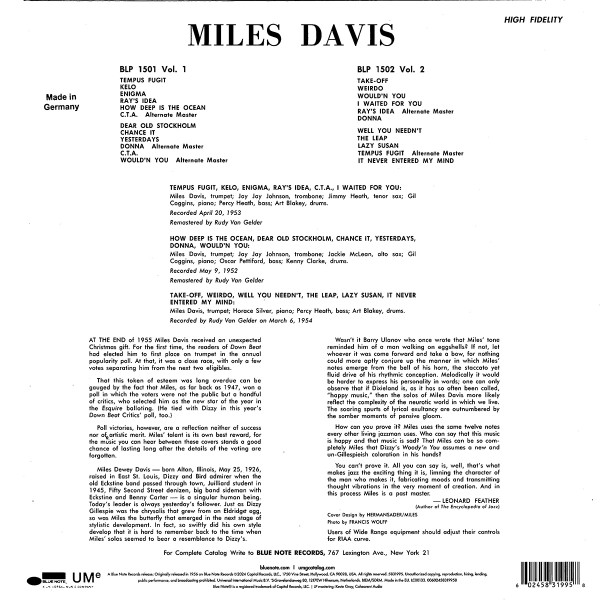 Miles’ın bop döneminin en ateşli kayıtlarından biri; gençlik enerjisi, teknik hız ve melodik zekâ bir arada. Jackie McLean ve J.J. Johnson gibi isimlerin katkıları albüme parlak bir front‑line dinamizmi katıyor. Parçalar hızlı, keskin ve tamamen bop geleneğine sadık. Miles’ın tonunda henüz ilerideki cool döneminin minimalizmi yok; burada daha agresif, daha keskin bir yaklaşım var. Rudy Van Gelder’ın erken dönem kayıt estetiği sıcak ve canlı. Albüm hem tarihsel hem müzikal açıdan büyük önem taşıyor. Miles’ın gelişiminin ilk büyük işaretlerinden biri. (AI)